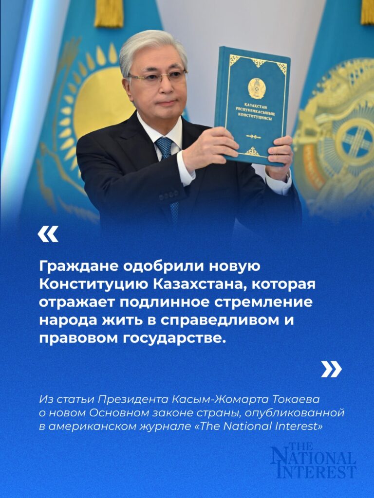 📰 В американском журнале The National Interest вышла статья Президента Касым-Жомарта Токаева о новом Основном законе страны. В статье Президент Казахстана отметил, что недавний конституционный референдум в Казахстане подтверждает приверженность страны курсу на национальное развитие.